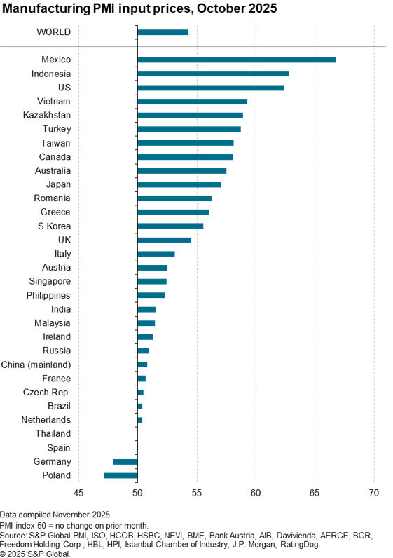 While a globally benign price pressures environment was reported, a notable exception was the elevated input cost inflation in the US, largely linked to tariffs.