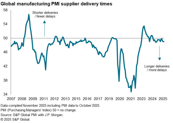 The benign global inflation environment was helped by few instances of supply chain delays. While average supplier delivery times lengthened slightly in October, the incidence of delays remained low by historical standards.