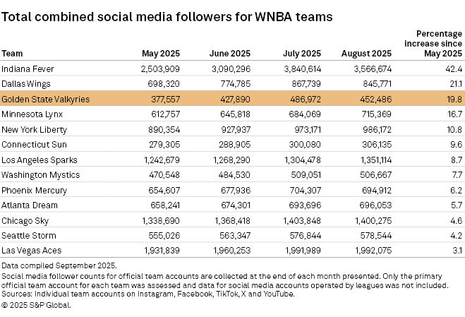 The Golden State Valkyries, launched in 2023 and debuting in 2025, have made a significant impact in the WNBA by securing over 20,000 season-ticket deposits before their first game. They sold out all 22 home games this season, averaging over 18,000 attendees and setting a WNBA record. Their community engagement efforts, including partnerships with local companies like Chase and Kaiser Permanente, have driven merchandise sales nationally. The team also saw a 19.8% increase in social media followers from May to August 2025. Looking ahead, owner Joe Lacob aims for a championship within five years, leveraging their successful inaugural season and modern facilities to attract top free agents.