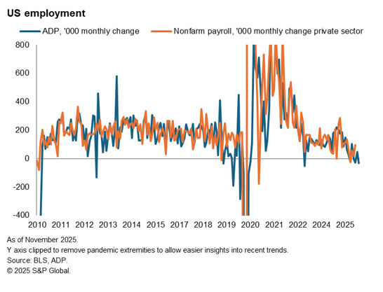 A rate cut would come despite US consumer price inflation having accelerated to 3.0% in September and despite concerns that the pass-through of tariffs could also exert further inflationary pressures, as indicated by business survey price gauges. Furthermore, business activity indicators, such as the ISM surveys and PMI from S&P Global, hint at robust fourth quarter GDP growth. However, the case for lower rates lies largely with the labour market, especially after the ADP payroll report signalled falling private sector jobs.