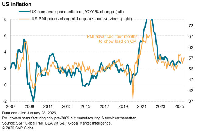 Input cost inflation remained elevated in January, though moderated from December’s seven-month high to sit at the weakest since last April. The moderation reflected a cooling of input cost inflation in the service sector, as manufacturing input prices rose at the fastest pace since last September, once again widely blamed on tariffs.