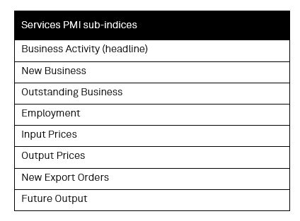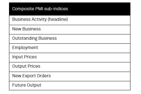 Beyond the headline and inflation gauges highlighted here, S&P Global’s PMI also cover all the following sub-indices for relevant economies and sectors.