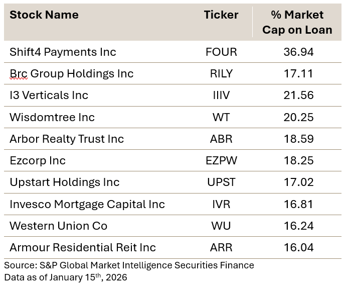 Short loan value as a percentage of market capitalization across US financial stocks has increased notably from 0.8% to 0.92% as of January 12, 2026. This 15% increase in short interest follows President Donald Trump's recent announcement proposing a 10% cap on credit card interest rates.