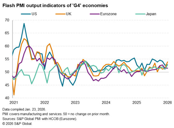 US economic growth has proven resilient in recent months, albeit with signs of some momentum being lost at the turn of the year according to flash PMI numbers. And, while official inflation data have been encouragingly muted compared to the hawkish expectations of some policymakers, the survey data point to tariff-related price pressures persisting down supply chains. However, the job market remains a key concern, with low job creation evident despite the ongoing economic expansion, likely resulting in a bias toward further rate cuts. Hence the rhetoric from the Fed will be closely monitored to weigh up the outlook for rates. Our experts in fact expect the Fed to hold rates steady through the first half of 2026 before reaching a neutral range of 3.00% to 3.25% by the end of 2026.