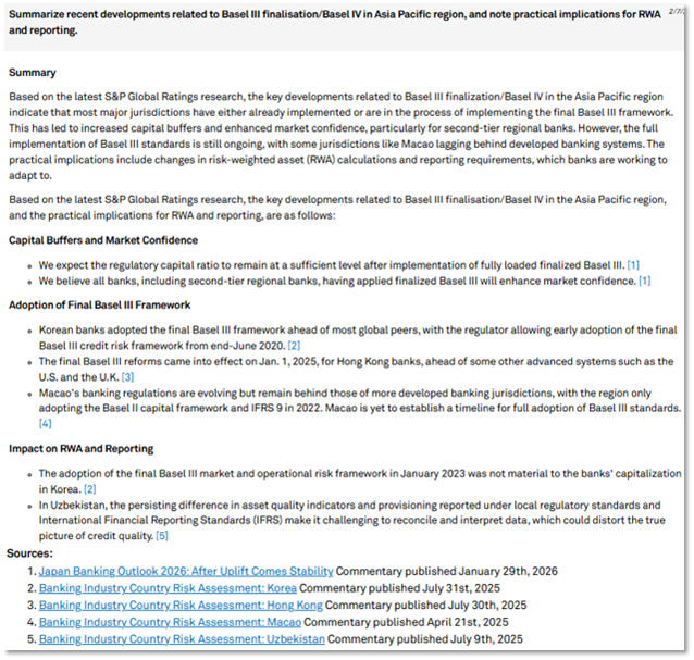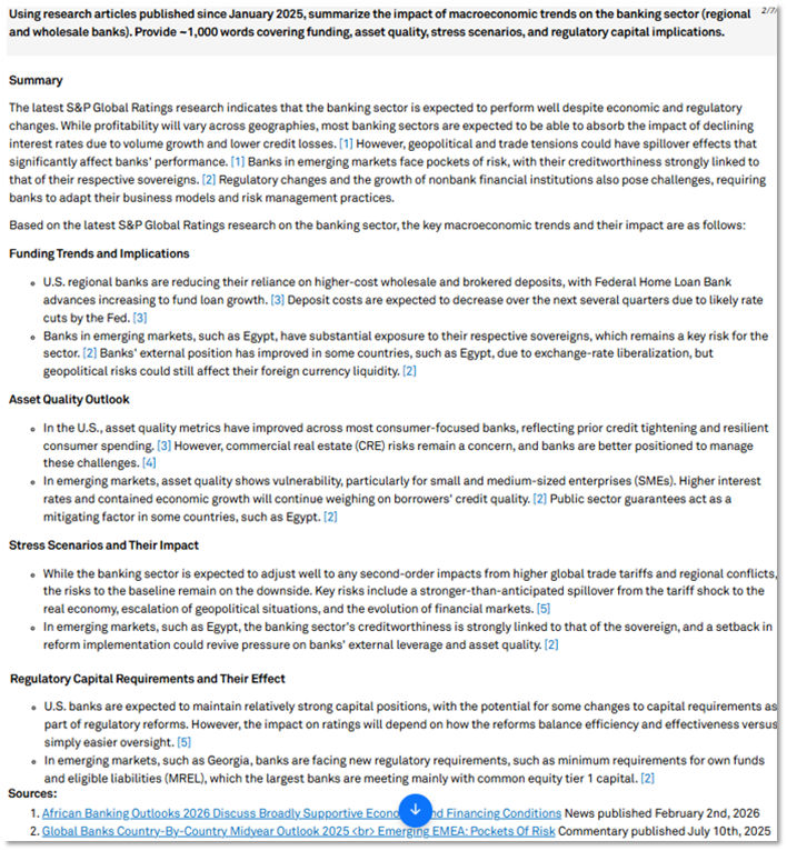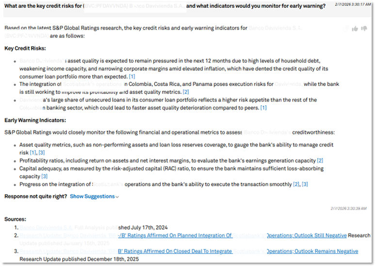 Source: CreditCompanionTM on RatingsDirect® on S&P Capital IQ Pro, S&P Global Market Intelligence. As of February 2026. For illustration only. CreditCompanionTM is powered by generative AI technology, which may produce inaccurate responses. Please review the Legal Disclaimer for more information.