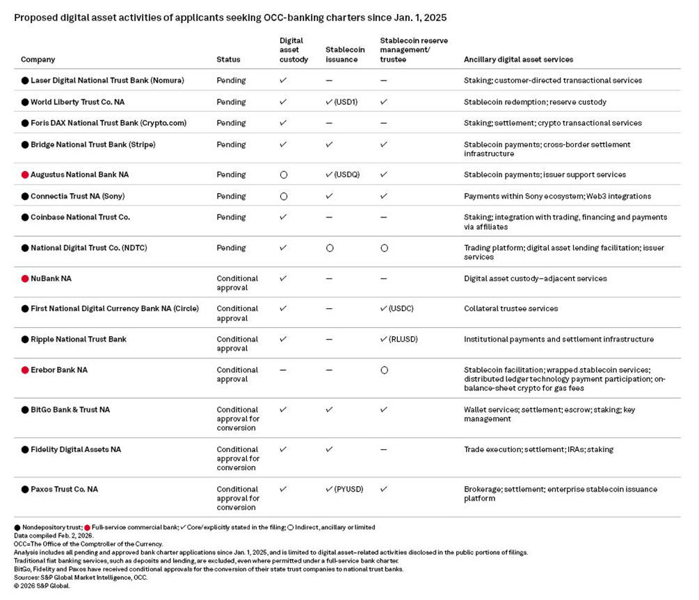 A smaller but more ambitious group of applicants is seeking full-service banking licenses to integrate stablecoins directly into conventional banking products.