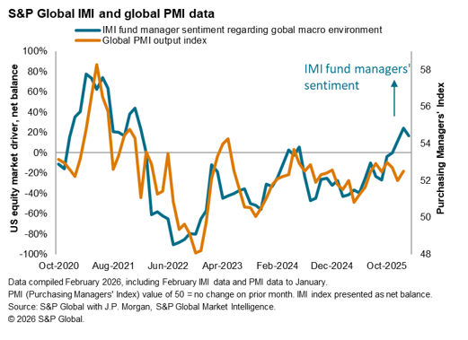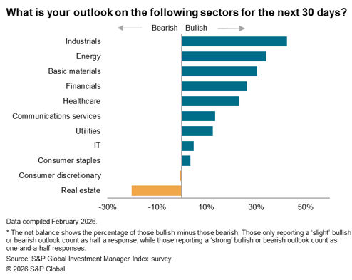 The latest S&P Global Investment Manager Index (IMI) indicated that risk sentiment has moderated since the start of the year. This reduction in risk appetite was accompanied by renewed pessimism regarding near-term US equity market returns and a notable shift in sector preferences.
