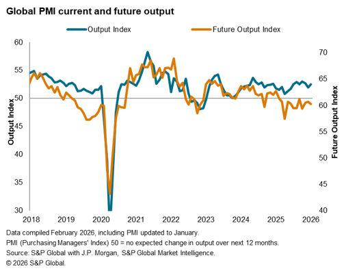 Purchasing Managers' Index™ (PMI®) data are compiled by S&P Global for more than 40 economies worldwide. The monthly data are derived from surveys of senior executives at private sector companies, and are available only via subscription. The PMI dataset features a headline number, which indicates the overall health of an economy, and sub-indices, which provide insights into other key economic drivers such as GDP, inflation, exports, capacity utilization, employment and inventories. The PMI data are used by financial and corporate professionals to better understand where economies and markets are headed, and to uncover opportunities.