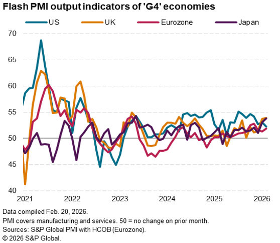 Fourth quarter GDP data are also released for India, which has been a sustained strong performer in the PMI rankings globally, albeit losing a little momentum at the tail end of 2025, as well as Singapore and Hong Kong SAR. Interest rate decisions are meanwhile due for Thailand and South Korea.