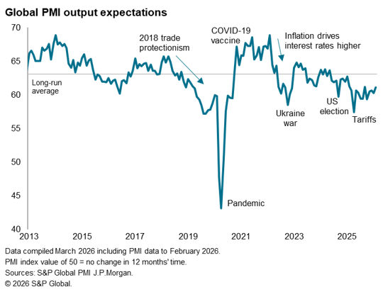 Companies’ output expectations meanwhile rose globally to the most optimistic since last September (and the second-highest over the past year), in part reflecting some positivity around a more benign economic impact from US tariff policies.