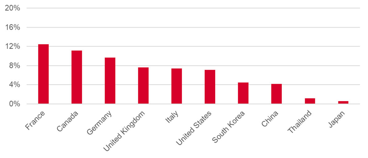 Under the scenario, European countries will be more affected by the Middle East conflict than the United States and the Asia-Pacific countries. Among the major economies, France is expected to experience the largest increase in median PD, followed by Canada and Germany. Asia-Pacific countries are expected to be relatively less affected.