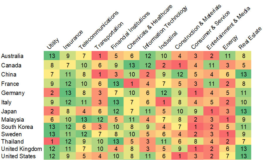 Table 1: Sector ranking per country (1: most affected, 13: least affected)