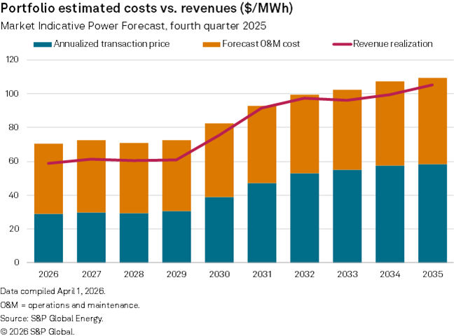 Due to reduced capacity factors, the forecast merchant revenue targets for the portfolio increase on a $/MWh basis after 2030. We forecast, however, that reduced energy market revenue will be more than offset by increased capacity revenue, driving revenue growth that more closely aligns with the portfolio's targets.