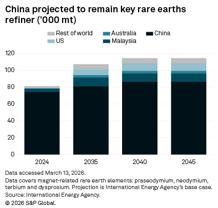 Diversification is expected to be gradual, as processing complexity and scale requirements limit how quickly new supply chains can compete with existing Chinese capacity.