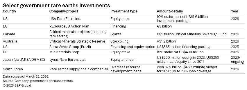 Governments and investors are accelerating funding to reduce reliance on China’s dominant rare earth supply chains, using tools such as equity stakes, price floors and long‑term offtake agreements.