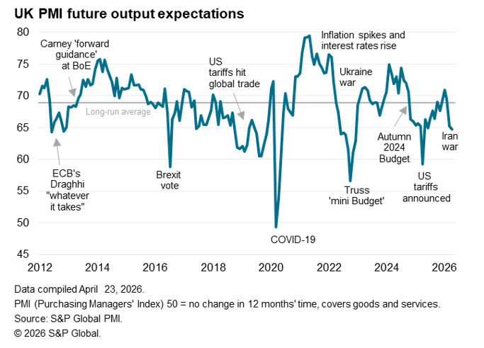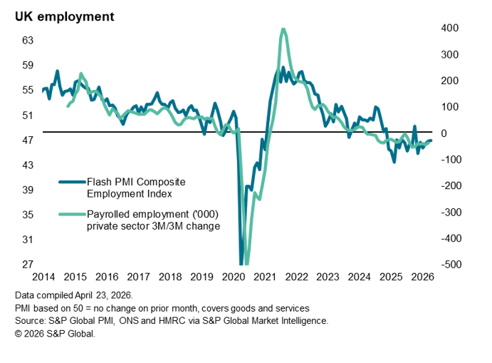 The combination of low confidence and high input costs led to further job losses in April. As well as high raw material and energy prices, companies again cited government policies such as the rise in the minimum wage as having deterred hiring. The survey’s gauge of employment has signalled falling staffing levels continually since the autumn Budget of 2024.