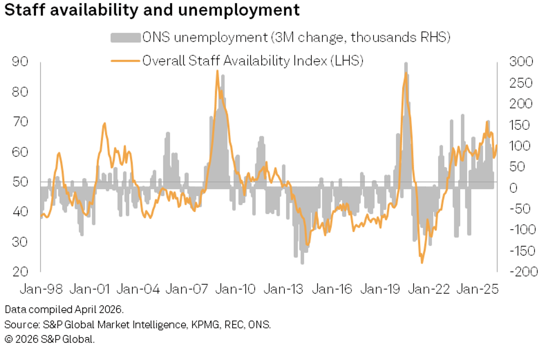 However, rising business costs, which have been exacerbated by rises in the minimum wage and the war in the Middle East and the subsequent surge in energy prices, continued to impact job creation and dampened pay growth. Pay growth was also limited by improved labour supply. Staff availability rose at the quickest pace in three months, with the current stretch of rising labour supply the longest recorded in nearly 20 years of data collection.