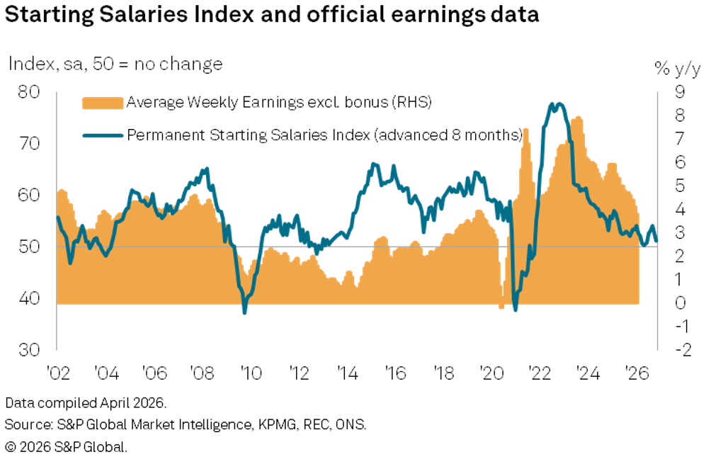 While the Starting Salaries Index has remained above the post-pandemic low seen last October 2025, it continues to signal a further easing of official pay growth to approximately 3% in the coming months. This would mark the slowest rate of increase since the initial wave of the pandemic, but one that remains stronger than the pre-pandemic trend.
