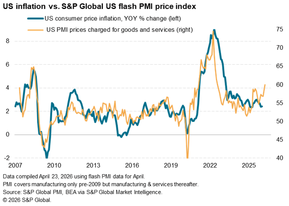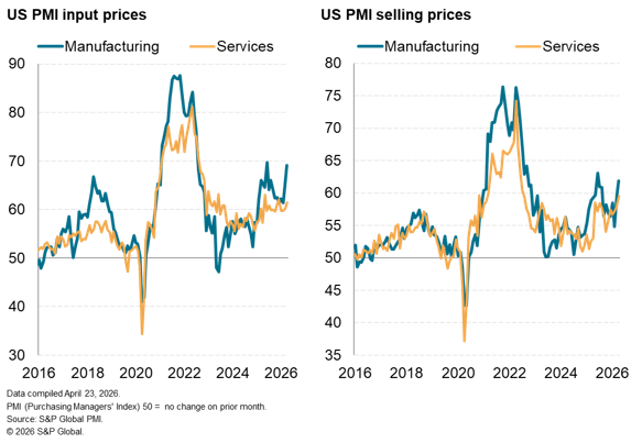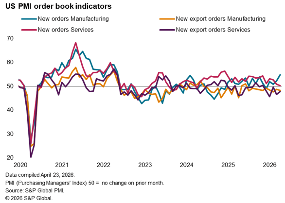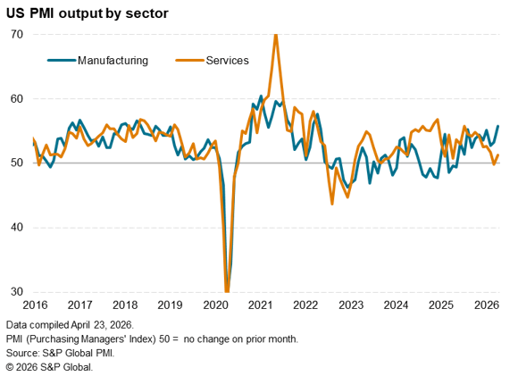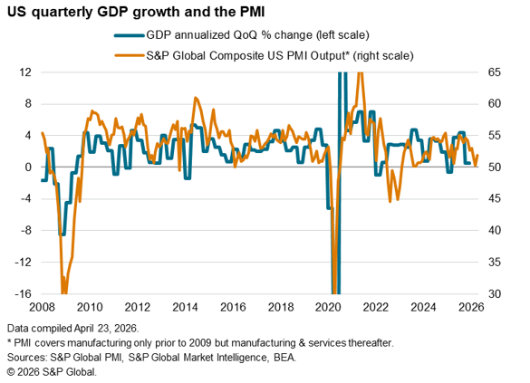 The flash US PMI survey data from S&P Global indicated a muted rebound in business activity in April, after growth had almost stalled in March on the outbreak of war in the Middle East. However, part of the rebound reflected a short-term boost from stockpiling as companies feared supply shortages emanating from the conflict.
