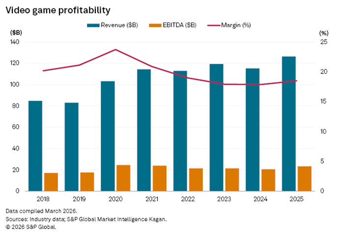 A healthy bump in revenue and an ongoing push toward staffing austerity netted the video games industry just more than half a point of EBITDA margin growth to 18.5% in 2025, but that key profitability metric was still below the 20% level common in the pre-pandemic years.