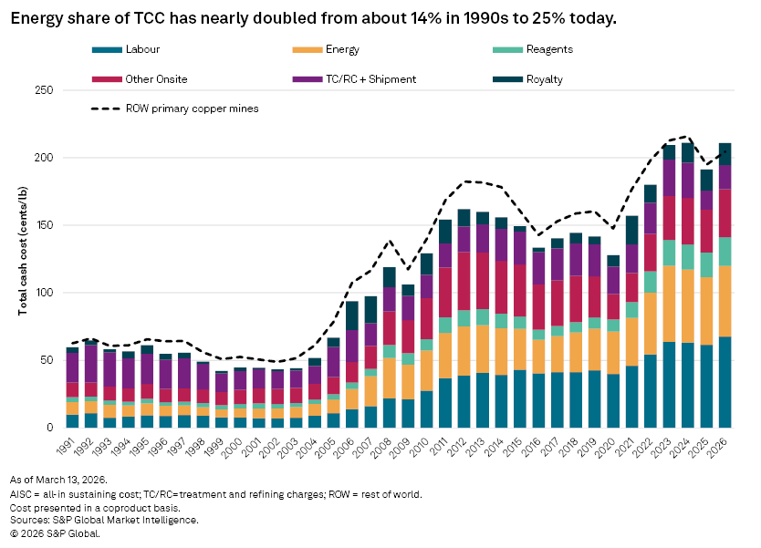 Water scarcity is therefore emerging as a basin-scale constraint that affects multiple mineral supply chains. At the same time, the environmental profile, which is now central to supporting expansion in both copper and lithium, depends heavily on energy sourcing and brine discharge management. Strong integration of renewable energy and robust environmental monitoring is becoming critical to minimize long-term impacts. These factors highlight structural cost pressures facing the industry. Declining ore grades and new water infrastructure raise the long-term cost base, while cyclical operating costs fluctuate with exchange rates, input prices and by-product credits.