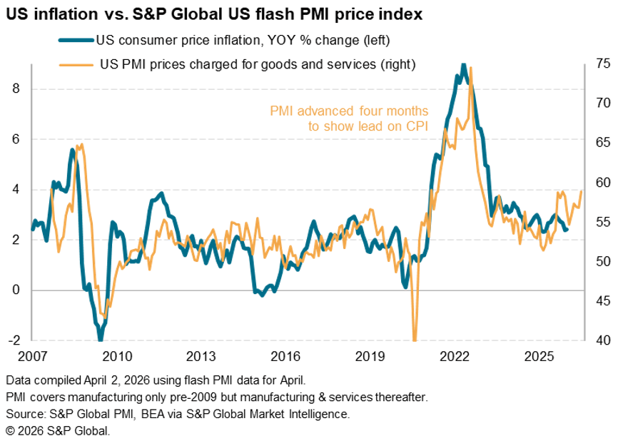 The service sector PMI due in the coming week look set to show an even greater initial hit to economic growth from the war than the manufacturing survey released in the past week, if the earlier flash data are anything to go by. The provisional survey data pointed to consumer services, notably travel and tourism, being hit especially hard by war-related uncertainty and higher fuel costs, with financial services activity also impacted by worries over inflation and higher interest rates.