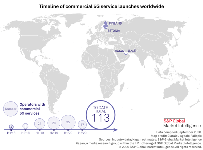 52 new operators have commenced commercial 5G operations as of September 2020, bringing the worldwide total to at least 113 operators spread across 52 markets.