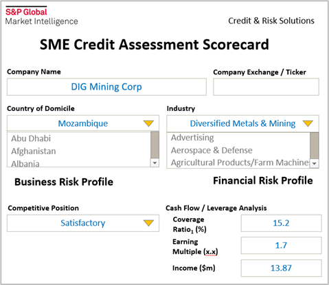 The SME Scorecard provides an off-the-shelf solution that can readily be used by team members. Point-in-time and forward-looking qualitative factors, along with converging trends, create a comprehensive picture of credit risk. The credit scoring framework is designed to broadly align with S&P Global Ratings' credit rating methodology and best practices. | |