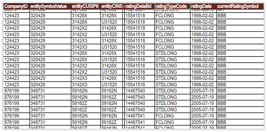 RatingsXpress offers one of the industry’s largest databases of current and historical credit ratings from S&P Global Ratings with entity- and security-level data in one schema. The credit ratings cover nearly one million securities: