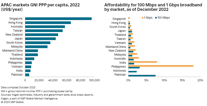By year-end 2022, 18.2% of total broadband users had broadband plans with download speeds of 1 Gbps or above, while more than 80% stayed below 1 Gbps, according to S&P Global Market Intelligence Kagan data. The majority of Asia-Pacific is not ready for metaverse applications in households, which need a bandwidth of at least 1 Gbps and ideally 5 Gbps to get a fully immersive experience, according to data from ISP Race Communication.