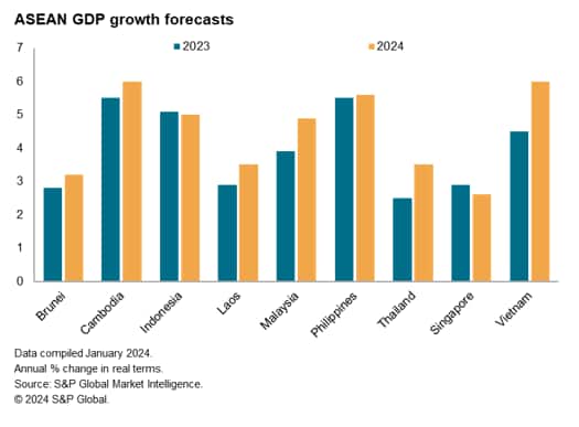 A number of ASEAN central banks are also expected to commence easing monetary policy during 2024, which will help to provide some stimulus for economic growth.