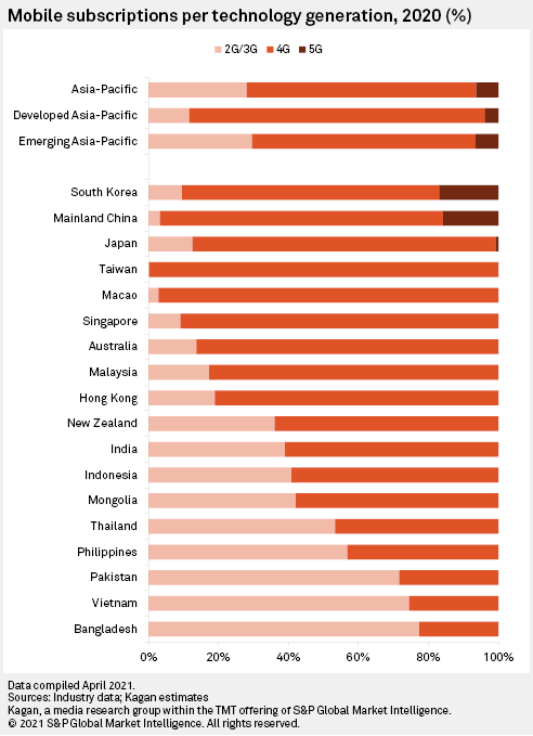 To support this heightened level of spending, operators would have to increase their revenues either by discontinuing promotions and discounts, selling more expensive packages with higher data allocations, or offering value-added services. However, other factors, such as the threat of new entrants in Japan (Rakuten Mobile Inc.), the Philippines (DITO CME Holdings Corp.'s Dito Telecommunity) and Singapore (TPG Telecom Ltd.), may limit the ability of operators to increase their prices.