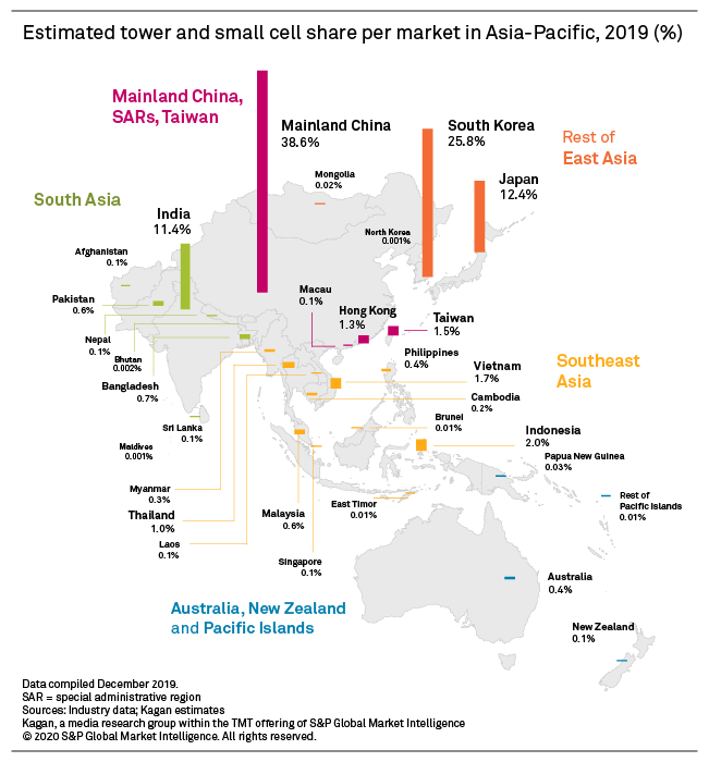 Mainland China, South Korea and Japan currently have the largest tower markets in Asia-Pacific.