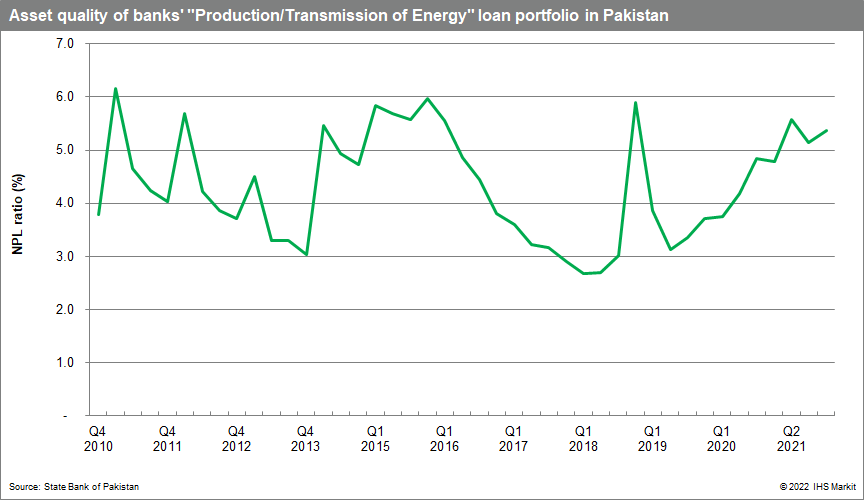 Pakistani energy production and transmission companies have historically required government subsidy to survive due to state-installed price cap on oil and gas prices. Although these maximum prices have been allowed to rise by between 20% and 45% in June and July, the government has continued to require IMF support (with the latest injection in July 2022). The rise in energy prices will likely impact on these energy companies' ability to repay bank loans, impacting on asset quality.