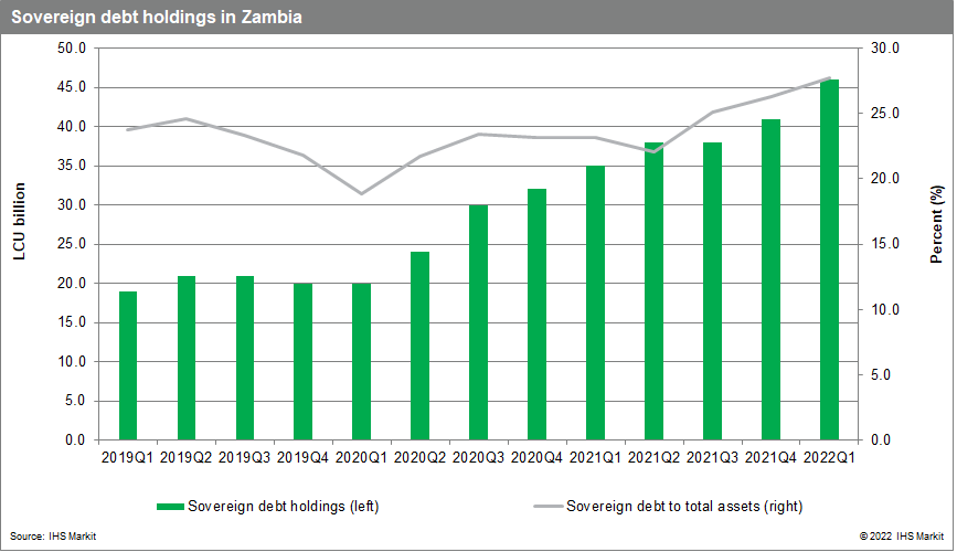 Zambia's bilateral creditors are expected to release a statement advising the exact amount to be provided as debt relief, a necessary step to pave the way for Zambia to secure a USD1.4 billion credit facility with the International Monetary Fund (IMF). Access to the IMF credit facility will bridge some of the government's funding requirement for 2022, thus easing pressure on commercial banks to purchase additional government debt, which crowds out private-sector lending. In addition, the debt restructuring will improve Zambia's debt sustainability, which will in turn help bank's asset quality, given that part of the banking sector's NPLs are as a result of government arrears.