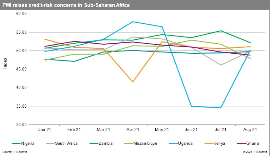 Lackluster PMI™ results raising credit-risk concerns in Sub-Saharan African economies for the rest of 2021.