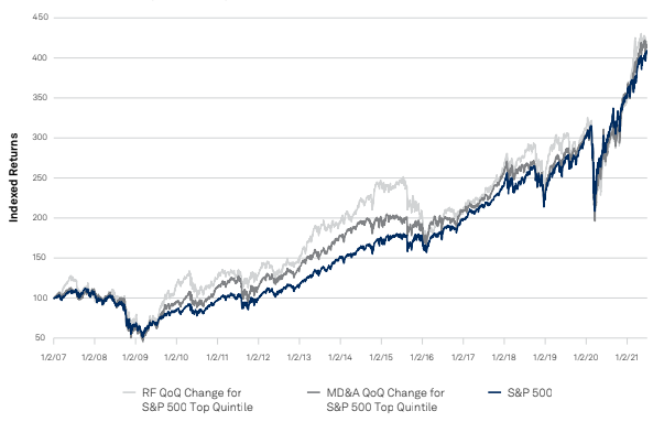 [2] Zhao, F. “U.S. Filings: No News is Good News, Textual Consistency in Corporate Filings Signals Outperformance” S&P Global Market Intelligence Quantamental Research May 2021.