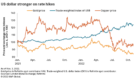 The U.S. economy has been showing resilience, with healthy nonfarm payroll growth and a modest decline in the headline inflation rate in September. Further, the U.S. Department of Energy has awarded a $2.8 billion grant to support the domestic battery supply chain as part of the Bipartisan Infrastructure Law, hinting at increased demand for battery metals in the medium term. The outcome of the U.S. Federal Reserve meeting Nov. 2 could prove detrimental to demand, however, as the Fed raised interest rates by 75 basis points, which could accelerate the economic slowdown in the U.S.
