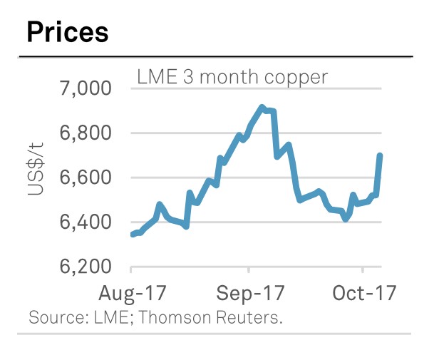 Despite a recent pickup in the three-month copper price on the London Metal Exchange and a push above US$6,700/t, our assessment of the broader copper market outlook has not altered. We still see copper prices as above fundamentally justified levels and the need to tackle Chinese debt as a significant risk to forward demand prospects, and we expect prices to trade lower in the fourth quarter and into 2018.