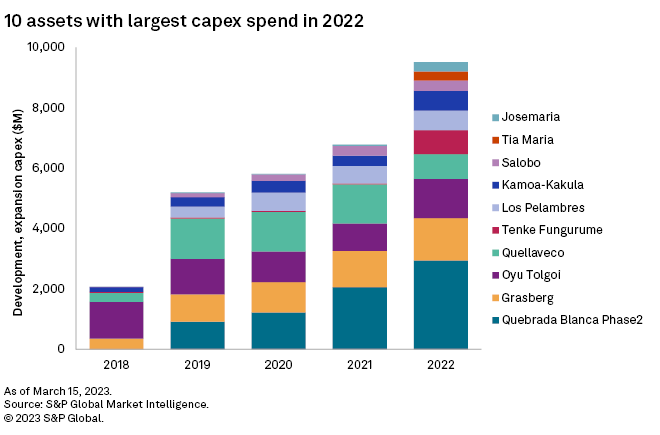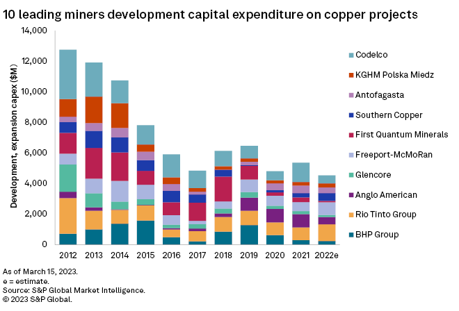 Africa saw copper development capex grow year over year in 2022, mainly due to CMOC Group Ltd.'s $2.51 billion investment to roughly double copper and cobalt production at Tenke Fungurume's 10K project in the Democratic Republic of the Congo (DRC) by 2023.