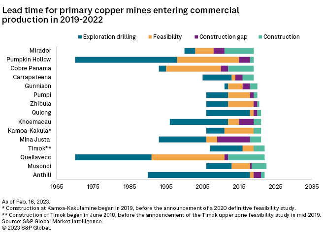 – The copper projects we studied took an average of 23 years to go from discovery to production.