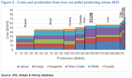 Labour: Labour costs from the EU28 mining operations are above average. Despite being above average, the EU28 labour costs are comparable to, and often lower than, developed nations such as Australia, Canada, Chile, and the United States. It is important to note that high salaries do not necessarily equate to high labour costs.