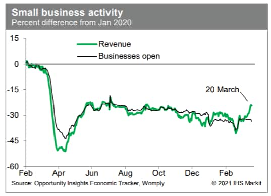 - Revenues at small businesses have turned up sharply in recent days, according to the Opportunity Insights Economic Tracker, a hopeful sign for this struggling sector. (IHS Markit Economists Ben Herzon and Joel Prakken)