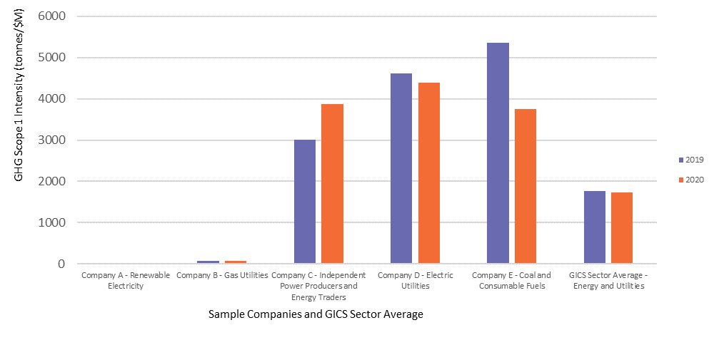 Figure 2: GHG Scope 1 Emission Intensity (tonnes/$M) for Sample Companies in APAC Energy and Utility Sector