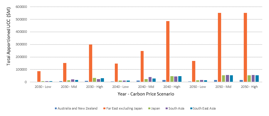 Figure 5: Total Apportioned Unpriced Carbon Cost by Subregion for APAC Energy and Utilities Sector