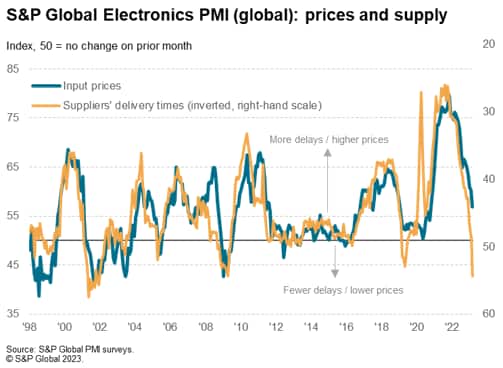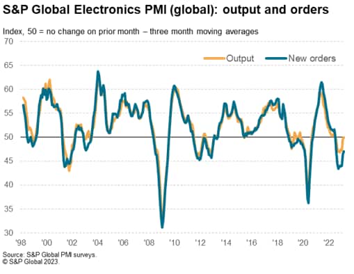 S&P Global's Electronics PMI™ signalled a stabilisation of production among electronics firms around the world in the first quarter of 2023. Albeit showing some monthly volatility, specifically with March seeing some payback after a steep rise in February, the average factory output trend in the first quarter was flat, representing a marked improvement on the steep declines seen throughout the second half of last year.