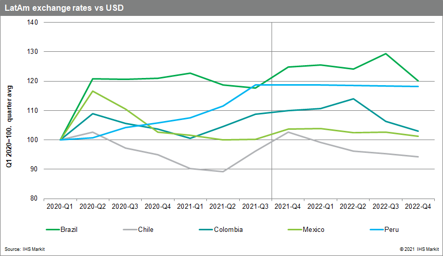Latin American currencies face near-term downside risk from political uncertainty but could well recover in late 2022.