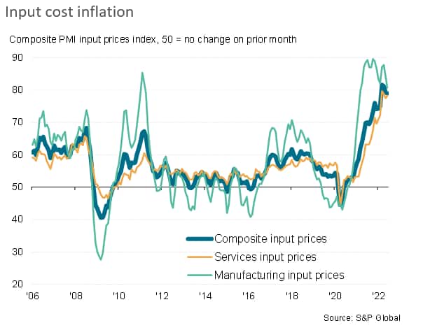 In contrast to the easing of raw material price pressures seen in manufacturing, the service sector saw its rate of input cost inflation accelerate to the steepest since April, in part reflecting the pass-through of prior raw material and energy cost increases to wages.