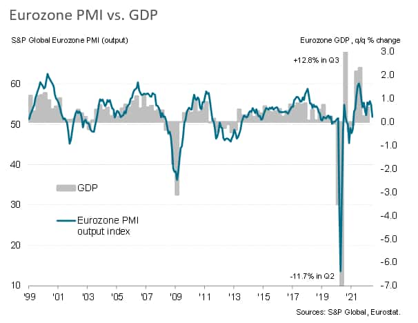 Companies also scaled back their business expectations for output over the coming year to the lowest since October 2020. Both the stagnation of demand and worsening outlook were widely blamed on the rising cost of living, tighter financial conditions and concerns over energy and supply chains linked to the Ukraine war and ongoing pandemic disruptions. Price pressures meanwhile remained elevated at levels not seen prior to the pandemic, though a moderation of cost growth for a third successive month hinted at a peaking in the rate of inflation.