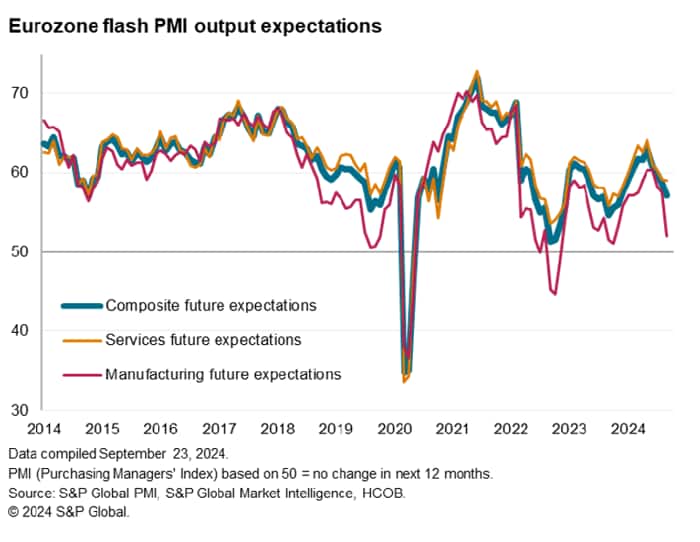 Boding ill for the near-term outlook, future output expectations slumped to a ten-month low in September, descending further below the survey's long-run average to point to subdued business prospects by historical standards. Most pronounced was a steep deterioration in business sentiment in the manufacturing sector, down to an 11-month low, though sentiment also dipped to a nine-month low in the service sector.